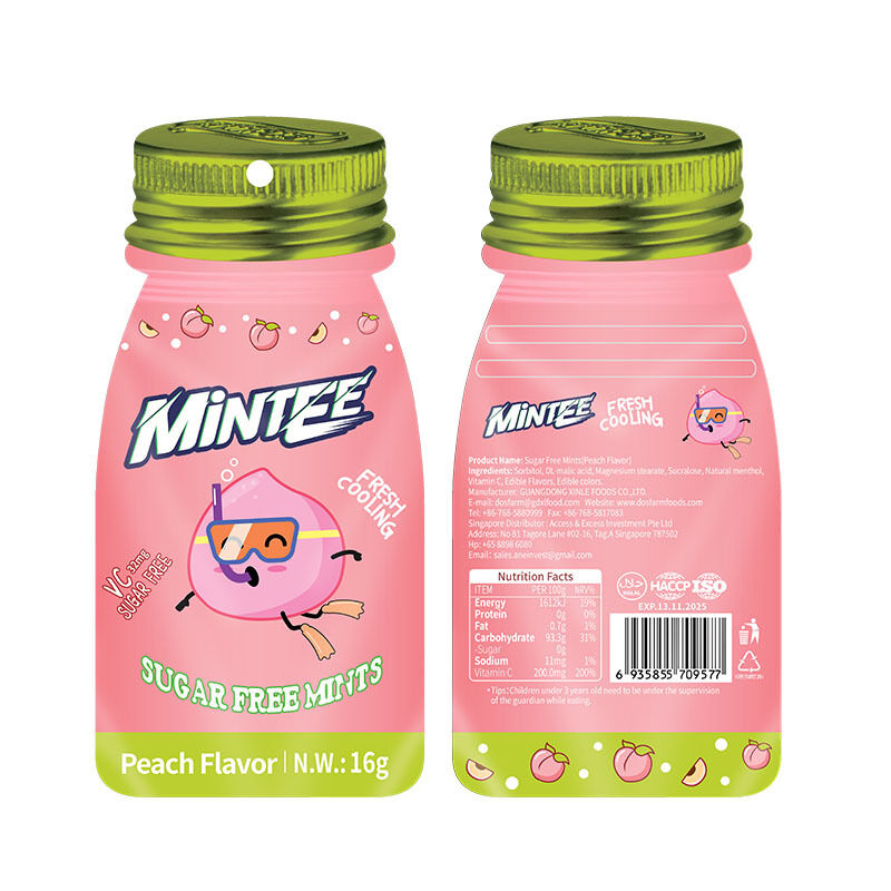 | Punti di vendita | zero zucchero, vitamina C, alito fresco, raffreddante, gusto acido e dolce, disegno di bottiglia brevettato |