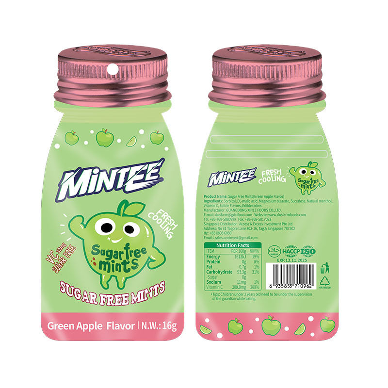 | Punti di forza | senza zucchero, vitamina C, rinfresca l'alito, rinfrescante, gusto aspro e dolce, design brevettato della bottiglia |